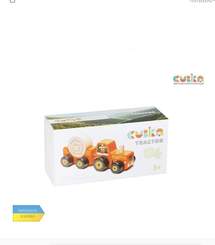 Розвиваюча іграшка "Трактор" від Cubika - дерев'яна іграшка для дітей від 3-х років, що складається з трактора і причепа, які кріпляться за допомогою магнітів. Торгова марка Cubika виробляє розвиваючі іграшки для малюків, тому всі деталі великої форми, не важкі і повністю безпечні для гри в ранньому віці. Набір виконаний з високоякісних порід явора і бука та оброблений фарбою на водній основі, виробленої за німецькими стандартами якості. Граючи з дерев'яними фігурками маля розвиває просторове уявлення, дрібну моторику і творче мислення. Вік: від 3-х років Країна виробник: Україна Матеріал: дерево Упаковка: картонна коробка