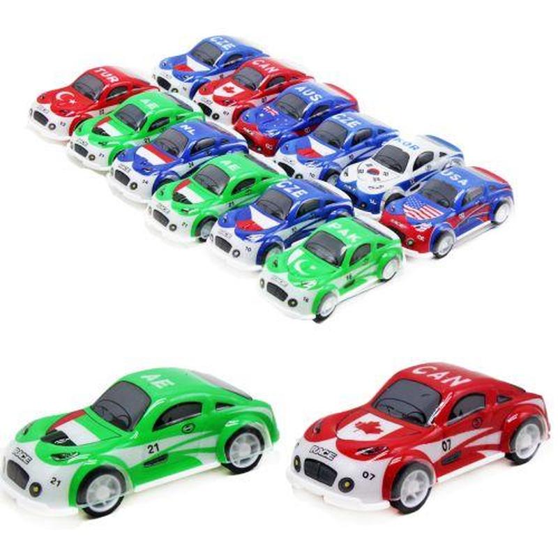 Набір з 12 інерційних машинок із прапорами різних країн світу. Представлені 6 країн, по 2 машинки від кожної країни. Машинки міцні та ударостійкі. Розганяються до великих швидкостей. Розмір однієї машинки: 8х4х3 см.