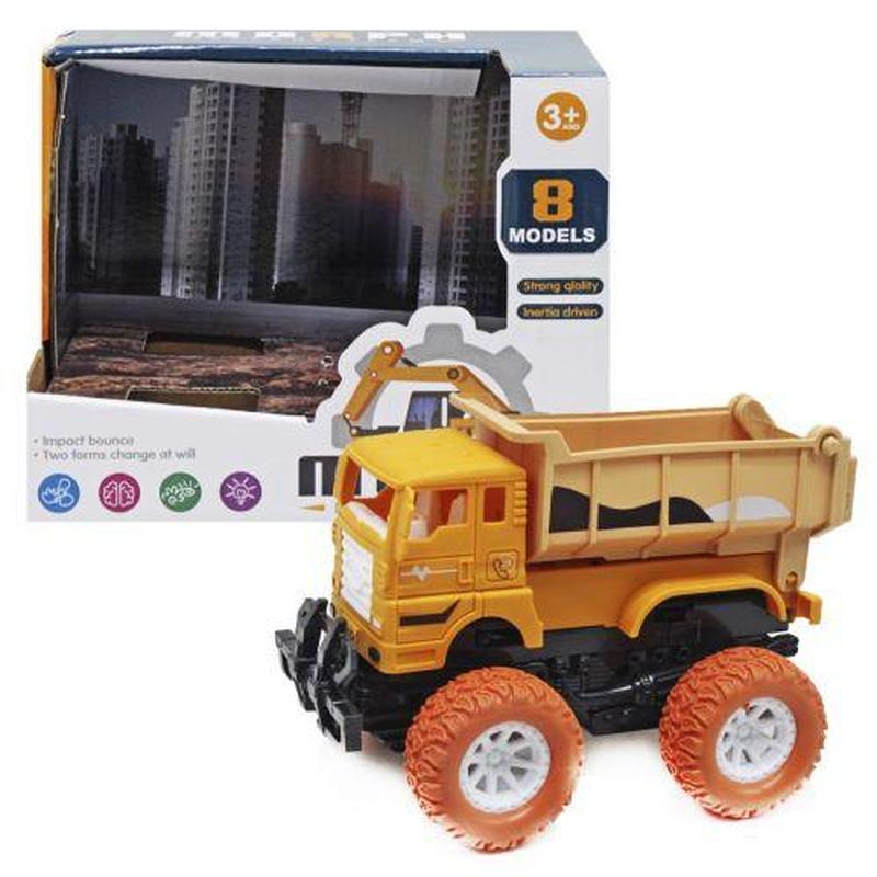 Інерційна машинка з великими колесами. Під час натискання на бампер або зіткнення машинки з перешкодою корпус підіймається. Розмір іграшки — 15х11х9,5 см, діаметр коліс — 4,5 см. Виготовлене з міцного пластику.
