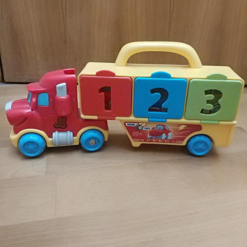 Детская машинка трейлер Игрушка представляет собой грузовой трейлер с прицепом, в котором размещены машинки 3 штук. Работает на батарейках, присутствуют звуковые и световые эффекты. Такая игрушка развивает у ребенка фантазию и мелкую моторику.