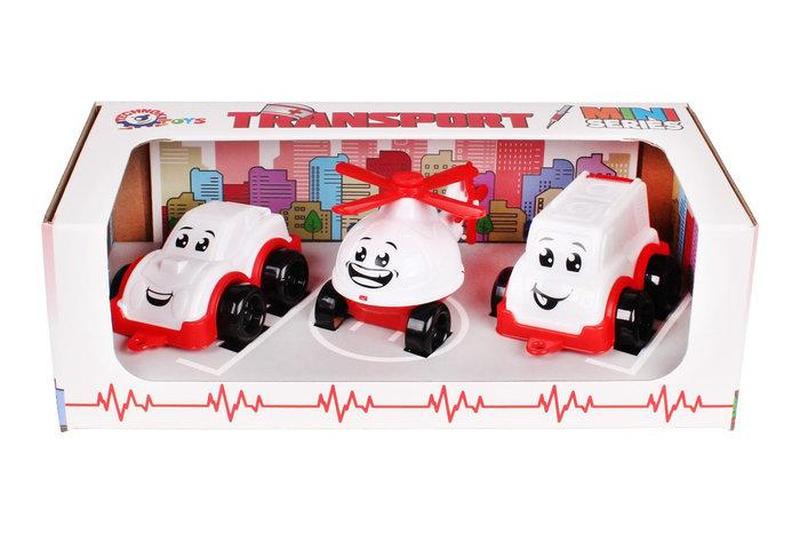 Игрушка «Транспорт Мини ТехноК» - это набор скорой помощи для игрушечных друзей, всегда придет на помощь. В наборе автомобиль, микроавтобус и вертолет. Известно, что сюжетно-ролевые игры развивают у детей фантазию, воображение и мышление. Маленькие машинки удобно брать с собой на прогулку или играть дома. Особенностью всех машинок в наборе есть глаза и улыбка, нанесенные методом «тампопечати». С такими эмоциями игрушки превращаются в сказочных героев и как бы оживают. Игрушечный набор «Транспорт Мини» имеет все шансы стать лучшим другом вашего ребенка. Упакованные машинки в яркую подарочную коробку. Для детей возрастом от трёх лет.