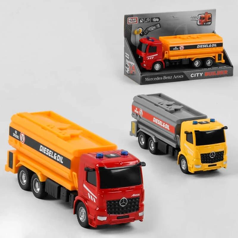 Спецтехніка іграшкова Play Smart, 2 види, 6719. Спецтехніка представлена цистерною у двох кольорах: - Червона кабіна з помаранчевим кузовом; - жовта кабіна із сірим кузовом. Вантажний транспорт включає в свою конструкцію рухливі деталі, що робить гру зі спецтехнікою ще цікавішою. Машинка виконана із поєднаних матеріалів: - кабіна метал; - кузов пластик; - Колеса з прогумованими шинами. Кнопка на даху кузова активує наступні ефекти: - підсвічування проблискових маячків синім; - робота двигуна; - Сигнал; - задній хід. Розмір машинки – 18×5×6.5 см. Ефекти працюють від 3-х батарейок AG13 – не входять у комплект. Розмір упаковки: 20 см × 8 см × 13 см Увага. Виробник залишає за собою право змінювати комплектацію, колірну гаму та характеристики товару без попередження.