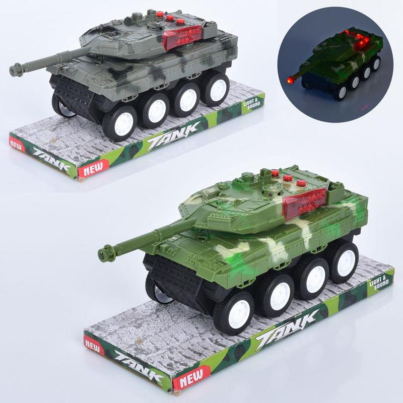 Игрушка танк инерционный, 25см, подвижная башня, звук, свет, 2 цвета, 383-53d-55d