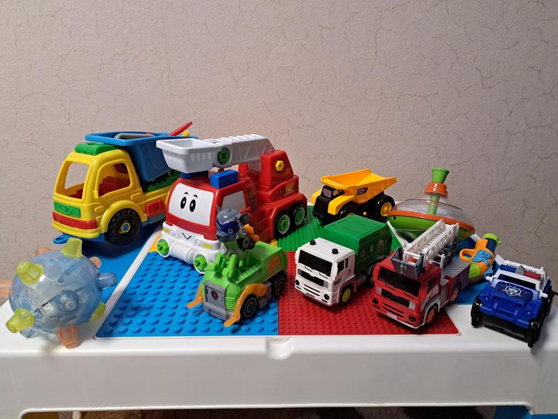 Продам іграшки в гарному стані! Дві великі з інструментами ( розбіраються , всі викрутки є ). М'яч пригунеці на батарейках! Пожежна і сміттєвоз їздять самостійно на батарейках! Машина Рокі з Щенячого патруля теж на батарейках з музикою з мультика! Самоскид заводиться за допомогою кнопки! Пістолет із звуком і мигає, юла та машина перевертиш! Ціна за все 500 грн