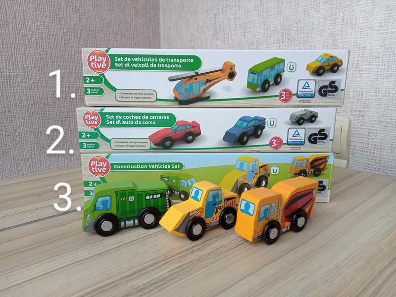 Набор деревянных машинок от немецкого бренда PlayTive. Изготовлены из древесины европейского бука. Все автомобили с магнитной муфтой Возрастная рекомендация: от 2 лет Материал: Дерево/металл/пластик Может комбинироваться с другими поездами и транспортными средствами от Playtive Совместим со стандартными деревянными рельсами и деревянными дорогами и т.д. Соответствует стандартам сертификатов TUV, GS. Размер упаковки: 29 х 6 х 4 см Страна производитель: Германия. В наличии: 1 - 2 шт 2 - 4 шт 3 - 5 шт Цена: по 200 грн