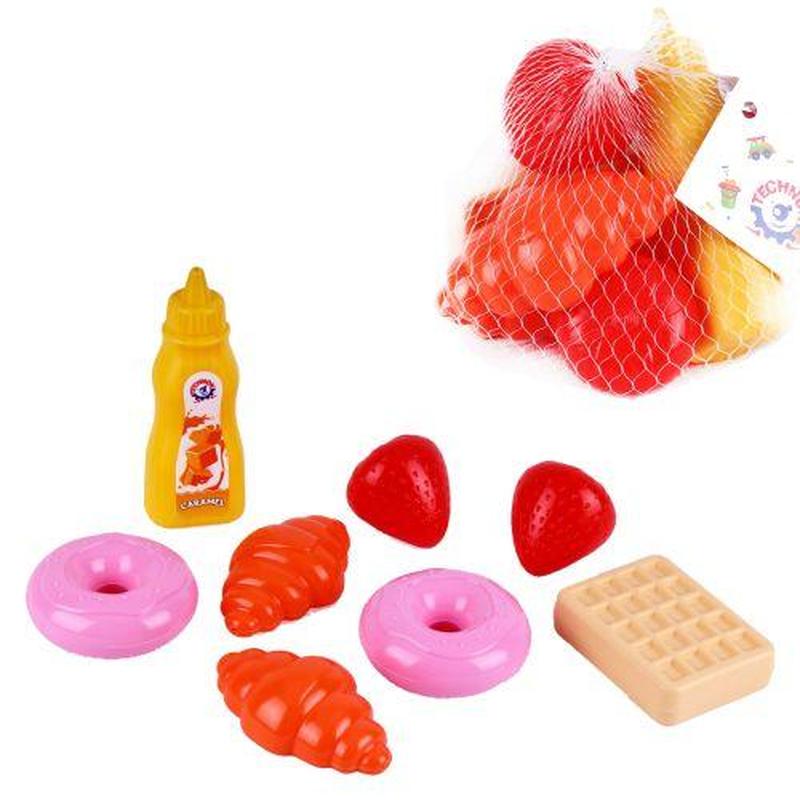Дитячий ігровий набір містить пластикові десерти. За допомогою набору дитина зможе запам'ятовувати назви різних десертів, а також вивчати кольори, форму, розмір. Всього в наборі 8 елементів. Виконані з якісного й безпечного матеріалу._