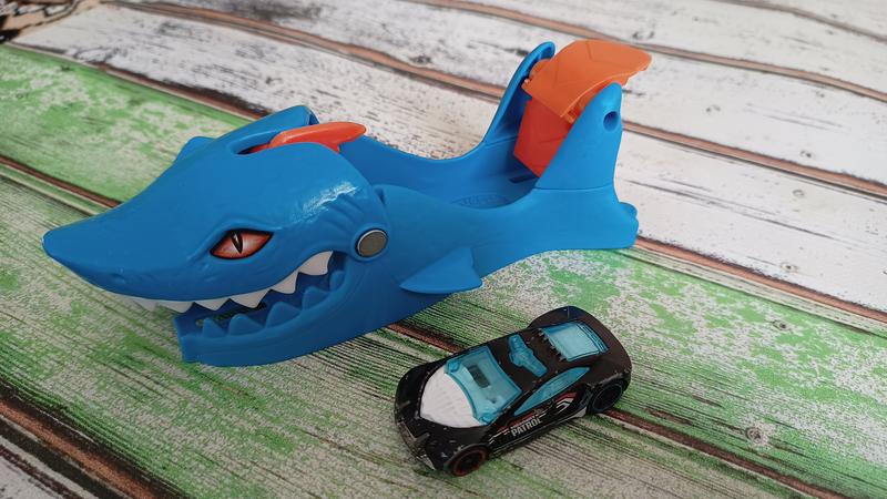 Нюанс на 5-ому фото,- вибитий зуб Акула - яскравий та цікавий подарунок тим, хто любить машинки! За допомогою небезпечної акули та спеціального спускового механізму, на який потрібно натиснути, машинка зможе не потрапити до небезпечної щілини. Але якщо швидкість не буде достатньою, то гострих зубів вона точно не пройде! Гра з набором допоможе розвинути дрібну моторику, фантазію, координацію рухів та логічне мислення.