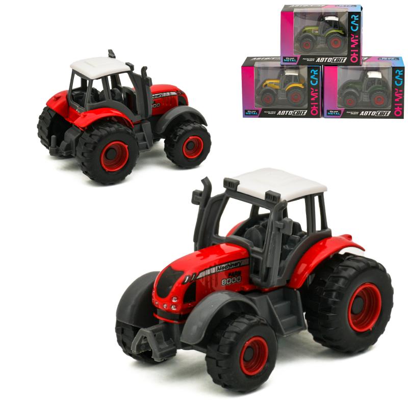 Іграшка "Трактор" 4 кольори. Металева колекційна модель. Гумові колеса, відкрита кабіна. Паковання — коробка. Розмір - 11х4,5х7,5 см.