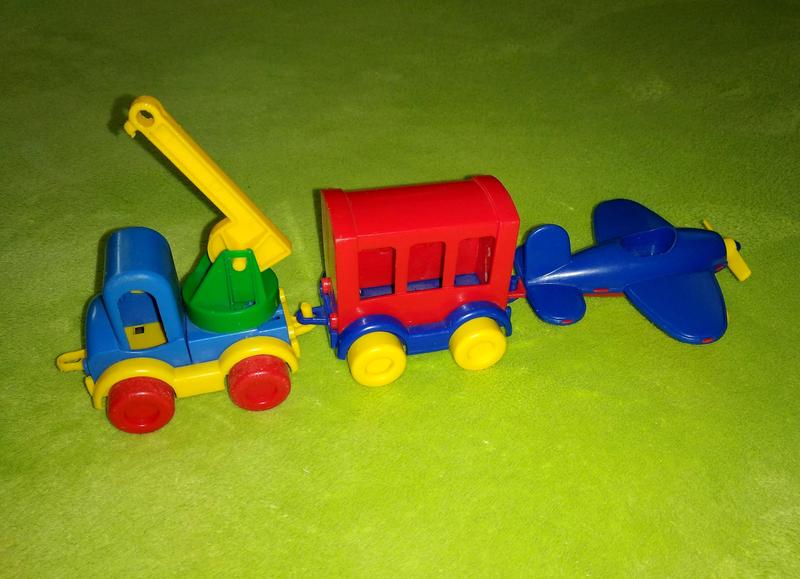 Машинки известного бренда Wader. Качественный пластик, неубиваемые. Все машинки можно соединять в паровозик. Замеры на фото. Состояние отличное. Цена за 3 машинки. Пересылаю. Смотрите другие мои объявления. Экономьте на доставке ;)
