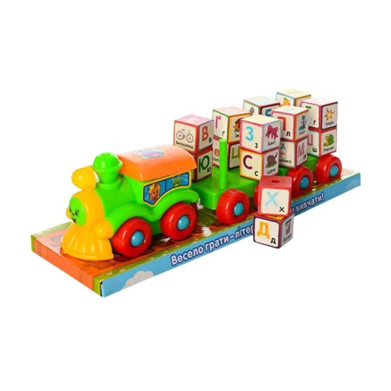 Паровоз с прицепом буквы-кубики на веревке в слюде.