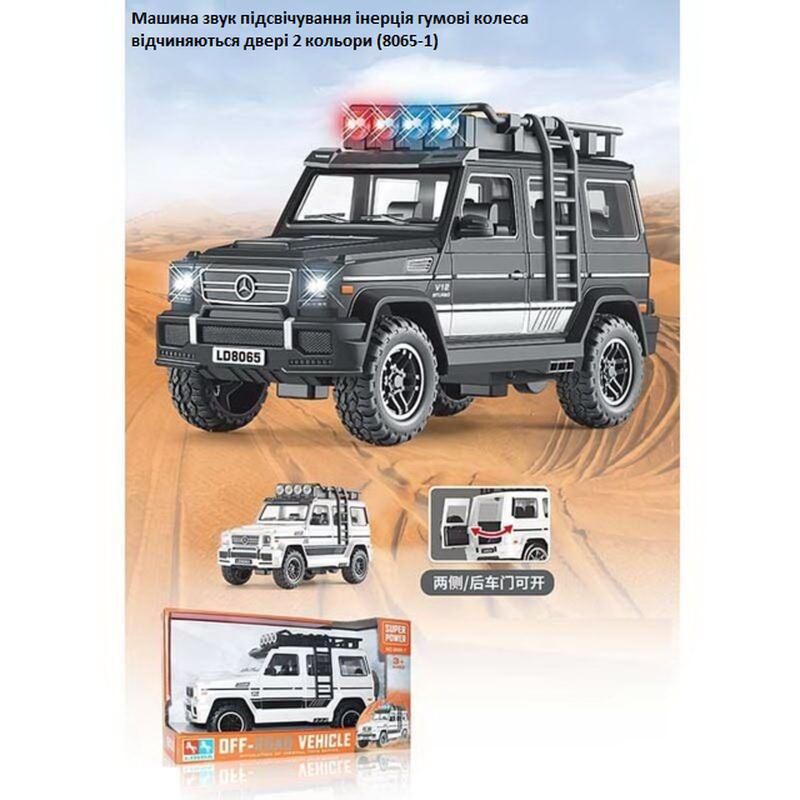 Деталізована модель сучасного джипа для юних колекціонерів автотранспорту! Машина стане чудовим доповненням автомобільної колекції хлопчика. Вона відрізняється чудовою деталізацією: кузов із запасним колесом, двері відчиняються, прогумовані колеса зі справжнім протекторним візерунком. На даху кабіни розташовані 3 кольорові кнопки: натисніть по черзі на кожну та отримайте гучні тематичні звуки. Збирайте колекцію автотранспорту спеціального призначення та відтворюйте захопливі сюжети! Особливості: - деталізована модель позашляховика; - корпус машини прикрашений написами; - прогумовані колеса з протекторним візерунком; - 3 активні кнопки на корпусі, які відтворюють характерні звуки; - яскраве підсвічування; - обладнана інерційним механізмом; - додаткові ефекти працюють від батарейок, які входять до комплекту; - виконана з міцного первинного пластику. * Характеристики та комплектація товару можуть змінюватися виробником без повідомлення