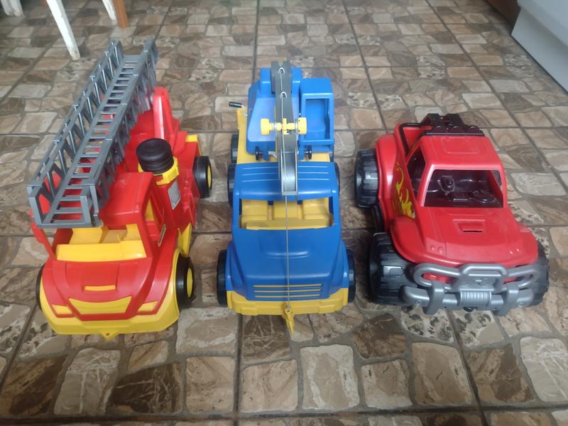Іграшкові машини. Ціна за усі три штуки – 650 грн. За умови покупкою SHAFA доставкою до вартості додається комісія Пожежна машина – 300 грн Пожежна машина виконана за аналогією до справжньої машини рятувальників. Гра з машиною буде цікавою та цікавою завдяки тому, що вона дуже функціональна. Автомобіль має сходи, що розкладаються, загальною довжиною 77 см, бак для води, насос і шланг. У бак можна по-справжньому наливати воду і, натискаючи на насос, подавати в шланг. Зручна і насамперед безпечна для дітей іграшкова пожежна машина підходить для гри як вдома, так і на відкритому повітрі. Всі елементи виготовлені з високоякісної пластмаси, стійкої до погодних умов, завдяки чому іграшка може цілий рік перебувати у дворі чи балконі. Іграшка виготовлена із міцного пластику, не токсична, не має запаху. Розмір машинки висота – 25 см, ширина – 20 см, довжина – 43 см Автокран – 250 грн Автокран - яскрава, приваблива, міцна та безпечна іграшка з високоякісної пластмаси. Містить багато елементів, що рухаються. Іграшкова машинка City Truck кран - яскрава, красива, цікава, якісна та безпечна для дітей іграшка. У новому дизайні вона не просто розважає дитину, але також розвиває її фантазію, інтелект, координацію та моторику, знайомить з тим, як працює справжній кран. Рухливість крана робить гру особливо цікавою. Іграшка підходить для гри як удома, так і на свіжому повітрі. Всі елементи цієї іграшки-машинки виготовлені із високоякісного пластику, стійкого до погодних умов. Тому машинка може цілий рік перебувати у дворі або на балконі. Вид іграшки: Будівельна техніка Матеріал: поліпропілен Розміри: 24х47.5х19 см Спортивний позашляховик – 200 грн Спортивний позашляховик із відкритим кузовом, масивними бамперами та великими колесами – зменшена копія свого «старшого» побратима. Особливості: Великі колеса з яскравим протектором легко долають різні перешкоди. Відкритий салон дозволяє розмістити у ньому іграшки. Яскраві наклейки на кузові. Оптимальні розміри для гри як у кімнаті, так і на вулиці. Попереду можна прив'язати до машинки мотузку. Виготовлений із безпечних та якісних матеріалів, без запаху. Розміри 23 x 35 x 20 см
