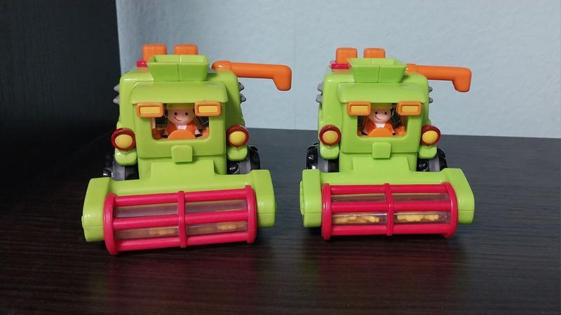 Інерційна машинка Комбайн Інерційна машинка, натискаються кнопки, рухаються, крутяться елементи, за кермом добрий водій) Невелика- 13×8×8см. Вживана, в хорошому стані. Є 2шт.