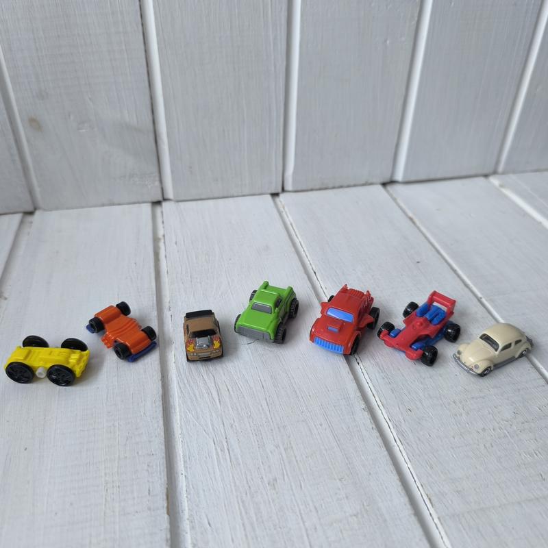 Тільки всі разом. Останню на фото окремо не продаю. Міні машинки. 2-4 см. Частина Mattel. Деякі інерційні, коричнева супер турбо швидкість, розганяється шаленно. Пластикові. Кожна цікава по своєму.