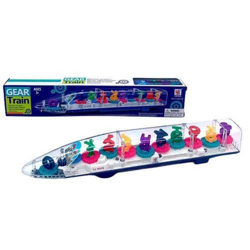 Оригінальна іграшка – потяг. Іграшка прозора, всередині розташована безліч рухливих шестерень, на яких встановлені різнокольорові цифри та літери англійського алфавіту. Має 2 режими роботи: перший режим - різнокольорове підсвічування, під час другого включається підсвічування з веселою мелодією та хаотичним рухом. Розмір поїзда 37х5х5 см. Для дітей віком від 3-х років. Вік: 3 роки Упаковка: Коробка Колір: Різнобарв'я Тип ел-тів живлення: Батарейки (АА) Кількість ел-тів живлення: 3 Ел-ти живлення в комплекті: Ні Вага з упаковкою: 295 г Габарити в упаковці: 38 x 7 x 5.5 см Габарити без упаковки: 5 x 27 x 5 см Країна виробник: Китай Матеріал: Пластик Комплектація: Потяг