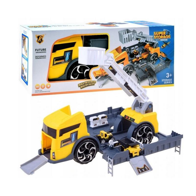 Супер-многофункциональный грузовик с большими колесами желтого цвета станет отличным подарком маленькому автолюбителю. Конструкция транспортного средства и автомобилей, прикрепленных к набору, вместе с другими элементами позволяет использовать его по-разному, например, в гараже, эвакуаторе или лифте. Он имеет открывающиеся откидные створки спереди и сзади, через которые можно выезжать из машины. Также открываются борта, которые в разложенном виде служат местом для парковки автомобилей и на которые можно установить входящие в комплект элементы. Подъемник с корзиной подвижный. Все это было сделано из пластика с вниманием к деталям. В набор также входят наклейки, которые могут дополнительно украсить грузовик и его интерьер, придав ему еще более реалистичный вид. Состав набора: - грузовик - 2 машины - 2 комплекта пластиковых элементов для сборки - наклейки Размеры грузовика: - длина 34 см - высота 15,5 см - ширина 9,5 см (в разложенном состоянии 29 см) - диаметр колеса 7 см Размеры автомобилей: - экскаватор 6 х 2,5 см - самосвал 7 x 3,5 см Набор подарит вашему ребенку часы долгой творческой игры. Транспортные средства позволяют развивать такие навыки, как вождение, концентрация, ручная работа, сообразительность, ловкость и сообразительность.Набор упакован в очень красивую красочную коробку, идеально подходящую для подарка. Легко трансформируется в гараж и обратно.