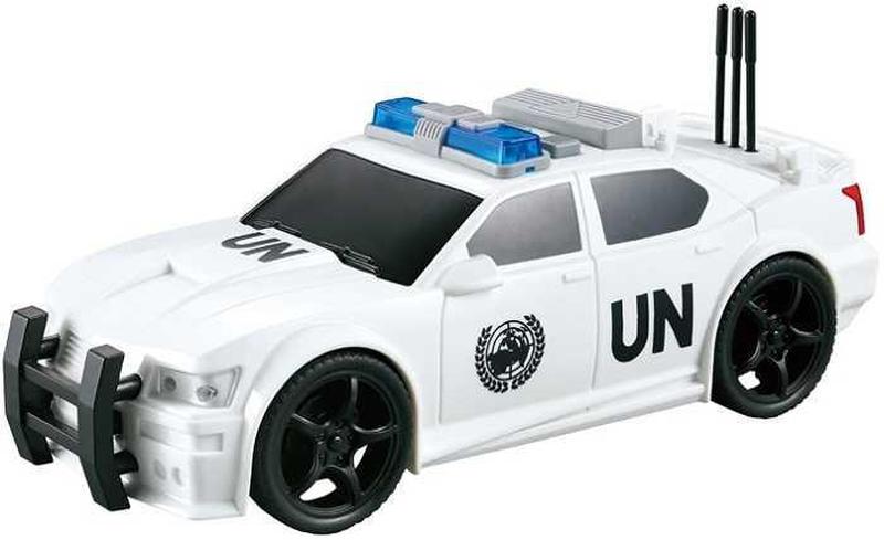 Инерционная машина United Nation непременно понравится любому мальчику. Машинка окрашена в белый цвет с цветографическими схемами и надписями на капоте и дверцах. В машинке верху установлена мигалка и 3 кнопки. На крыше машины дополнительно установлена кнопка для открывания багажника. Игрушка имеет световые и звуковые эффекты. Машинка займет достойное место в гараже маленького автолюбителя. Размер машинки: 19 * 9 * 8 см. Размер коробки: 24 * 11 * 16 см.