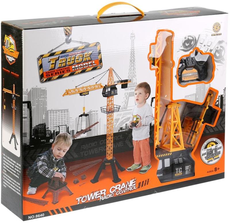 Кран із дистанційним керуванням, завдяки якому хлопчик зможе грати роль будівельника та використовувати пульт дистанційного керування для керування власним краном абсолютно безпечним способом. Кран має добру основу, що забезпечує стійкість під час гри. Рухомий важіль використовується для підіймання різних типів вантажів. Помістіть відро або навантажувальну платформу на гак. За допомогою пульта дистанційного керування ви можете підіймати та опускати вантаж, переміщаючи його вздовж стріли крана. Стріла крана може повертатися дистанційно на 350 градусів. Використовуючи вантажну платформу та кран, ви можете переміщати елементи конструкції Ейфелевої вежі. Джерело живлення: пульт дистанційного керування: 2 батарейки АА 1,5 В (у комплекті); кран: батарея Ni-CD 700mAh 4.8 V (у комплекті). Висота крана: 88 см. Висота Ейфелевої вежі: 45 см. Розміри упакування: 55 * 12 * 43 см.