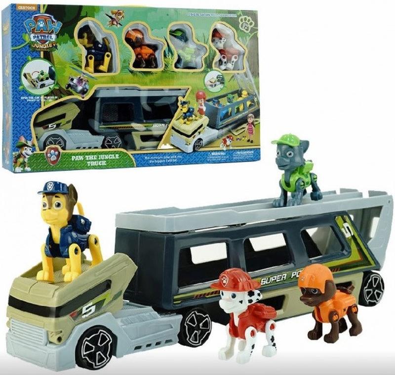 Кабіна має відкидний верх, для заїзду цуценя на машинці. Зверху в закритому стані є місце для одного цуценяти, який керуватиме трейлером. У місці з'єднання кабіни та причепа вантажівка має поворотний механізм, тому дитина буде легко пересувати та розгортати. Вантажівка має інерційний механізм. У трейлера відкривається верхня частина, усередину можна ставити собачок. Нижня частина — багажне відділення також відкривається. Розмір цуценят: 7 см. Лапки цуценят рухомі. Довжина вантажівки: 39,5 см. Розмір упаковки: 46,5*28*9 см.