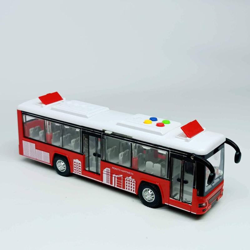 * * * Іграшка Музичний автобус червоний 98051B -- 28 см, інерційний, зі світлом і звуком Музичний автобус 98051B -- це реалістична та інтерактивна іграшка, яка подарує дитині цікаву гру в подорож. Оснащений світловими та звуковими ефектами, відкривними дверцятами та інерційним механізмом -- він імітує справжній міський транспорт. Гра з такою моделлю розвиває уяву, дрібну моторику та чудово підходить як для домашніх розваг, так і для подарунка. * * * Переваги: - Відкривні двері для реалістичної гри - Кабіна світиться при натисканні кнопки - Звуки мотора та клаксона -- активуються кнопками на даху - Інерційний механізм -- їде самостійно після легкого поштовху - Міцний пластик -- підходить для активних ігор * * * Характеристики: Параметр Значення Тип Іграшковий автобус Колір Червоний Функції Світло, звук, інерція, відкривні дверцята Ефекти Звук мотора, клаксон, підсвітка кабіни Механізм руху Інерційний Розмір 28 × 7 × 8 см Живлення 3 батарейки AAA (не входять у комплект) Матеріал Ударостійкий пластик Рекомендований вік Від 3 років Упаковка Картонна коробка * * * Комплектація: - Іграшковий автобус - Упаковка: коробка * * *