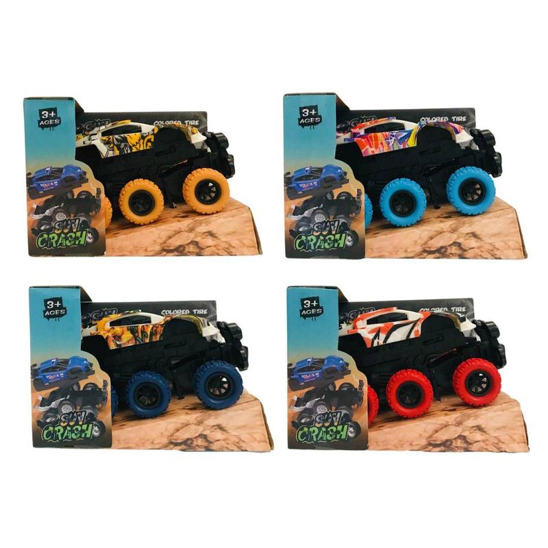 Крутий монстр трак представлений у 4 варіантах забарвлення. В автомобіля підіймається кузов, а також є вбудований інерційний механізм.