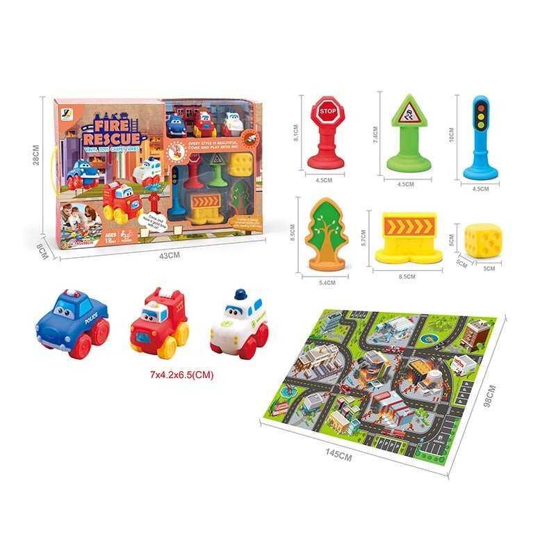 Набір іграшкових машин jzd - 112 (12) пожежна станція з килимком 145х98 см, 3 машинки, дек...