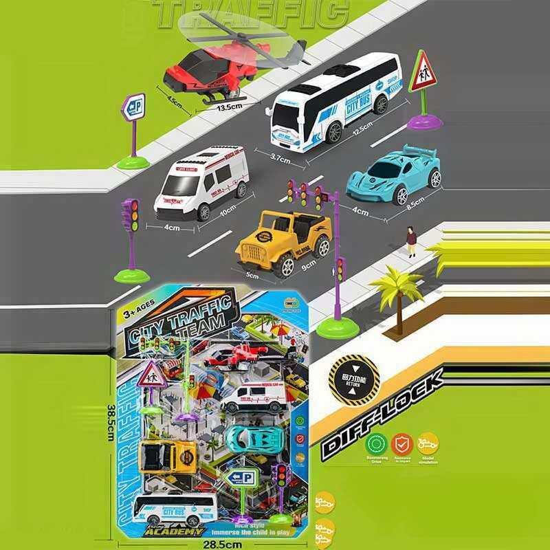 Колекція інерційних машинок 24610 (96/2) з різними видами транспорту на листі