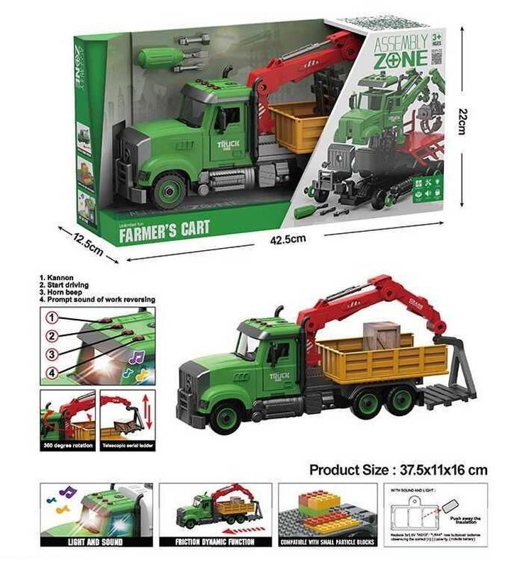 Ласкаво просимо у світ фермерського господарства! Наш навантажувач YW 9073 A (24/2) з серії “Farmers Cart” відкриває двері до незабутніх пригод для ваших малюків. Ця іграшка не лише розважить, а й навчить, пропонуючи безмежні можливості для творчої гри завдяки своїй унікальній розбірній конструкції. Ваш маленький автомеханік зможе розібрати цей навантажувач до найменшої деталі, а потім з радістю зібрати його знову. Крім того, кузов автомобіля слугує платформою для конструктора, що робить гру ще цікавішою! Основні характеристики: - Тематика - фермерська спецтехніка; - Інерційний механізм для легкого руху; - Можливість розбирання за допомогою спеціальної викрутки, що входить до комплекту; - Кабіна з 4 кнопками для активації звукових ефектів: звук двигуна, сигнал, звук заднього ходу та мелодія; - Яскраве підсвічування, що додає атмосферності; - Звукові ефекти працюють від батарейок (додаються); - Рухомі елементи для ще більшої інтерактивності; - Якісні матеріали, безпечні для здоров'я дитини. Цей навантажувач стане ідеальним подарунком для маленьких дослідників, які мріють про великі пригоди та незабутні ігри!