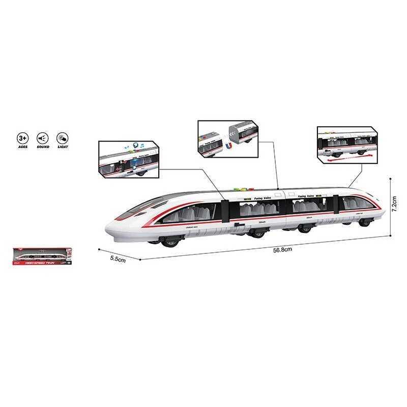 Захоплююча іграшка для маленьких машиністів! Швидкісний потяг WY 970 A — це справжня мрія для юних любителів залізниці! Цей стильний потяг довжиною 58 см перенесе вашу дитину у світ захопливих подорожей та неймовірних швидкостей. Завдяки реалістичному дизайну та продуманим деталям, він максимально наближений до справжніх швидкісних поїздів сучасності. Поїзд оснащений звуковими ефектами, які відтворюють характерні звуки справжніх потягів, та яскравим підсвічуванням, що робить гру ще більш захоплюючою. Особливості потяга: - Живлення від 3 батарейок типу AG13 (входять у комплект); - Справжні звукові ефекти, що повторюють звуки потягів; - Потяг рухається на колесах; - Яскраве підсвічування вагона для створення ефекту реальності; - Інерційний механізм для плавного руху; - Двері, що відкриваються (механізм для відкриття знаходиться знизу праворуч); Цей потяг — ідеальний подарунок для дітей, які мріють стати машиністами і відправитися у захопливі пригоди!