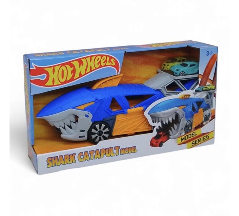 Іграшка Трейлер “Акула”, запускалка, 2 машинки Грати машинками люблять не лише хлопчики, а й дівчатка. Представляємо вам відмінний набір із транспортом, який неодмінно порадує маленького любителя гонки. захоплюючий набір трейлера у вигляді великої зубастої акули із запускачем, в комплект також Комплектація: 2 машинки довжиною по 7см, трейлер для зберігання машинок При натисканні плавця відкривається пащу акули і опускається трамплін усередині для виїзду машинок У хвостовій частині акули опускається трап для вʼїзду всередину машинки Збоку трейлера відкривається кришка, вставляєте всередину машинку та запускаєте за допомогою важеля на резинці у хвостовій частині акули Розмір коробки 36-19,5-8,5 см, Довжина акули 33см.