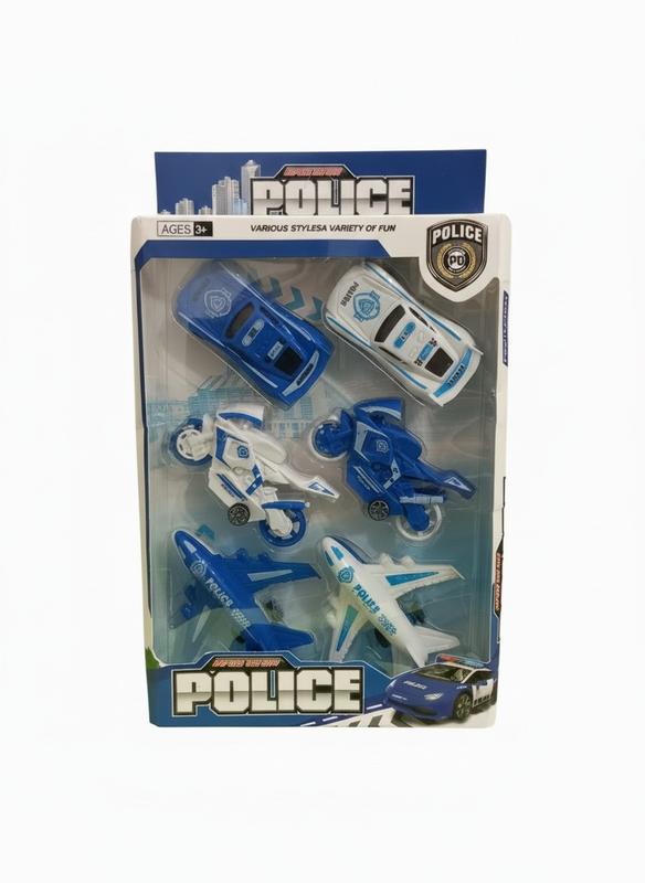 Набір поліцейських машинок із 4 шт. (Автобус, машинка, мотоцикл, вертоліт). Розмір машинки становить 12,5*4,5*6 см. Машинка виготовлена з пластику. Машинка без інерційний механізм