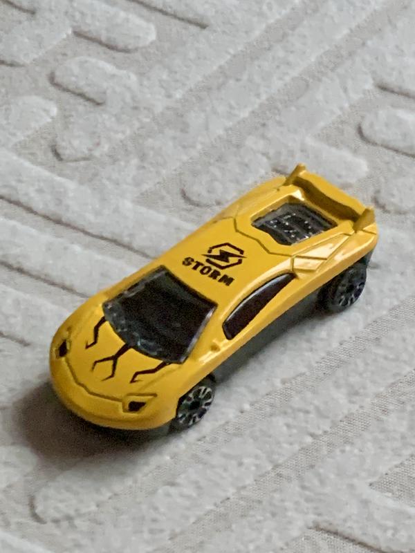 Іграшка машинка жовтого кольору Машинка-іграшка. Особливості: Жовтий колір із графікою "STORM" Матеріал: Метал із пластиковими деталями. Призначений для гри або використання на трасах для гонок. Допомагають розвивати фантазію, дрібну моторику, посидючість та уяву. Розмір на фото Б/в, ідеальний стан Склад метал