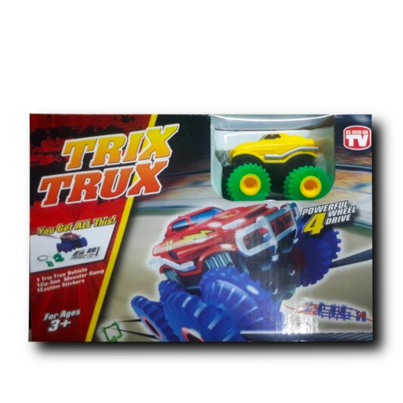 Трек Trix Trux, Трікс Тракс монстр-трак траса + 1 машинка Trix Trux нова машинка викликає масу радості у дітей. Багато варіантів для експериментів. Чудова можливість відволікти дитину від комп'ютера Використовуючи деталі з комплекту поставки, можна побудувати безліч різних, незвичайних видів трас – це розвиває в дитини уяву, логіку та мислення. Здивуйте, порадуйте своїх діток новинкою, оригінальні монстр-траки рухаються по різних трасах. Машинка вміє виконувати різні трюки.