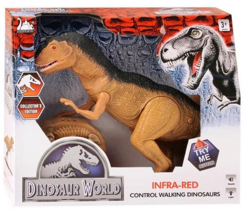 Цей доісторичний ящір керується за допомогою пульта, зробленого у формі стародавнього каменю. Натискаючи на кнопки, дитина побачить, що тиранозавр може ходити, рухати пащею, обертати головою, видавати звуки, схожі на крики справжнього динозавра, а також у неї світяться очі та паща. Батарейки для динозавра 3 АА/ 1,5 V (не входять до комплекту). Батарейки для пульта 3 АА/1,5 V (не входять до комплекту). Радіус дії пульта 10 м. Розмір пульта 12 * 7 см. Розмір динозавра 52 * 30 см. Розмір коробки 37 * 8 * 31 см.