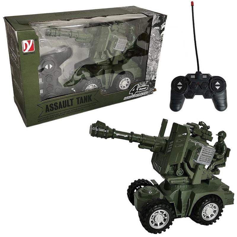 Гармата на радіокеруванні новинка в нашому онлайн-магазині. Гармата їздить вперед — назад, повертає ліворуч — праворуч. Працює від акумуляторної батареї, яка в комплекті й USB-кабель для заряджання акумулятора. Для пульта керування потрібно 2 батарейки типу АА (до комплекту не входять). А також є світлові ефекти. Розмір іграшки 23 * 10 * 16 см. Розмір коробки 33 * 12 * 20 см.