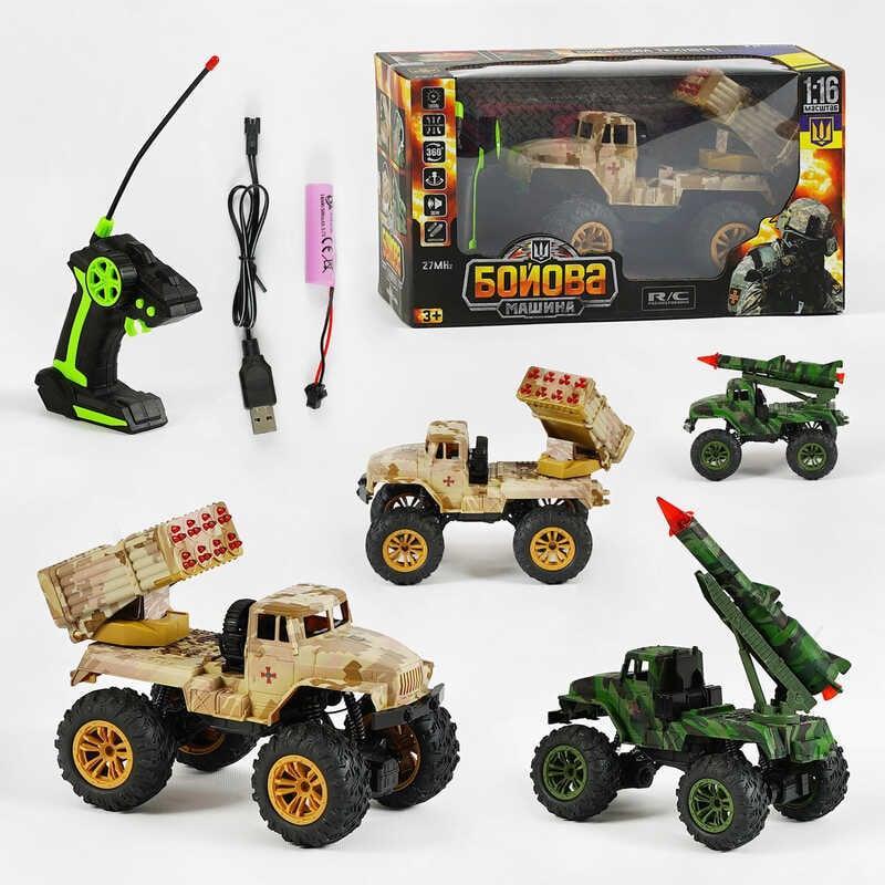 Вас чекає захоплююча пригода з радіокерованою іграшковою машинкою! Відчуйте адреналін, мчачи кривими польовими дорогами на новенькому джипі з ракетною установкою! Ця іграшка не тільки вражає своєю потужною амортизацією, але й дарує можливість керувати нею за допомогою пульта радіокерування. Це забезпечує додатковий рівень безпеки під час ігор у військові сценарії. - Масштаб 1:16 для реалістичної гри; - Яскравий дизайн з наліпками герба та ЗСУ; - Гумові колеса з потужною амортизацією для комфортного руху; - Ракетна установка обертається на 180 градусів, підсвічується та відтворює звуки; - Машинка легко рухається вперед/назад та повертає праворуч/ліворуч; - Акумулятор 3.7 V для довготривалої гри; - USB-кабель для зручного підзаряджання; - Пульт 27 MHz, що потребує 2 батарейки типу “АА” (не входять у комплект); - Виготовлена з безпечного пластику, що гарантує здоров'я вашої дитини. З цією іграшкою ви завжди будете на крок попереду в будь-яких змаганнях та зможете легко здобути перше місце у польових перегонах!