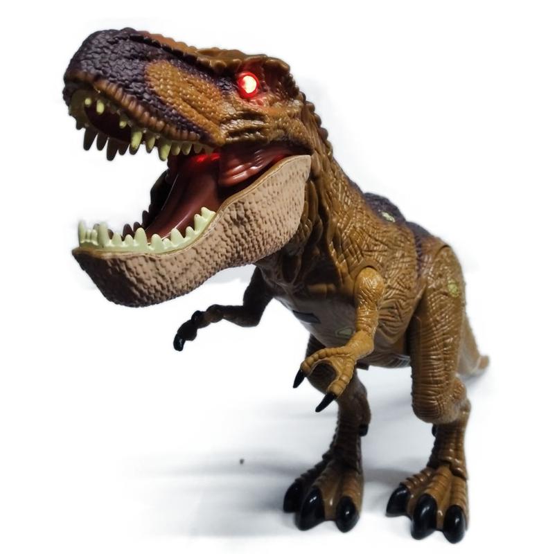 Крутий коричневий Тирекс на пульті радіокерування із серії Dinosaur Planet. Фігурка стародавнього диваща не тільки ходить, але так само гарчить і видає мінімум 5 різних звуків під час руху його ніг, пасти та інших чутливих частин тіла. Висота тиранозавра становить 27 см, завдовжки приблизно 45 см.