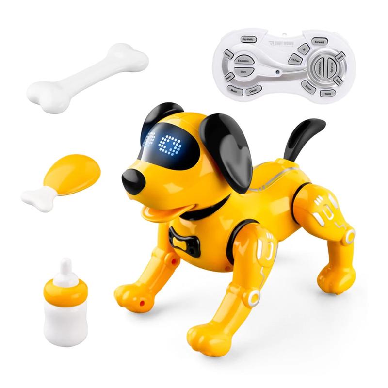 Лучший детский программируемый робот-собака, которого точно нет в Вашей коллекции! Восхитительная умная собачка с набором аксессуаров и пультом управления. Интерактивный робот-щенок, который знает и выполняет различные трюки. Он станет лучшим другом и будет радовать ребенка ежедневно. Дизайн умной собачки-робота: Очаровательный питомец, представлен в ярко желтом цвете, а ушки, носик и хвостик черного цвета. На грудке у питомца бабочка, которая еще напоминает косточку. Глаза робота-собаки сенсорные и светятся синим цветом. Размер игрушки 20х13.5х19.5 см. Особенности собаки-робота: - Высококачественный материал: пластик и электронные компоненты. - Расстояние дистанционного управления до 3 м. - Светодиодная подсветка глаз. - Интеллектуальное программирование. - Гнущиеся конечности. - Качественная сборка. - Сенсор, расположен на голове. - Интерактивное кормление. - Робот рассказывает истории на английском языке, поет, танцует, отжимается, похрапывает, разговаривает, выполняет ослепительные трюки, зовет детей поиграть с ним и отвечает на их вопросы. - Длительная робота на одном заряде. - Гнущиеся (бионические) конечности. - Противостоит падениям и переворотам. Взаимодействие кормления: Каждый аксессуар детского робота-собаки разработан с магнитами, также, как и его рот. Таким образом, когда ребенок захочет поднести любимый аксессуар питомца к его рту, они автоматически прикрепятся к нему. Интеллектуальная программа действий: Необходимо на пульте управления нажать кнопку, затем выбрать кнопки, которые будут отвечать за определенные действия робота. Таким образом Вы запрограммируете робота на необходимые Вам действия, и он будет выполнять их. Зарядка: - Танцующий робот имеет литиевую батарею 3,7 v 500mAh. - Дистанционный пульт заряжается от батареек 2 ААА (в комплект не входят). Конечности робота-собаки: Абсолютно все четыре лапки подвижны, задние же разработаны с независимыми двигателями, с бионической концепцией. Это позволяет ему ловко совершать разнообразные трюки и действия (используя для этого пульт ДУ). Мордочка: Собачка отображает свои эмоции. Игрушка умеет: - Петь. - Танцевать (5 танцев с музыкой). - Разговаривает. - Выполняет трюки. - Ходит вперед, назад, поворачивается. - Реагирует на сенсорный датчик. - Рассказывает истории. - Задает вопросы и дает ответы. Функция программирования робота: Необходимо нажать кнопку для программирования, выберите соответствующую комбинацию действий и затем нажмите кнопку использования. Робота-собаку можно запрограмировать на 50 действий. Хватит покупать бесполезные и неинтересные игрушки! Предлагаем Вам лучшую интерактивную игрушку 2023 года, которая сумеет удивить Вашего ребенка, которая развеселит его и станет ему лучшим другом. Если Ваш малыш мечтает о домашнем питомце, но у него алергия - это собачка сможет полноценно заменить настоящего щенка. Кроме того, эта собачка не наводит беспорядок, но за ней тоже нужно ухаживать и заботиться.