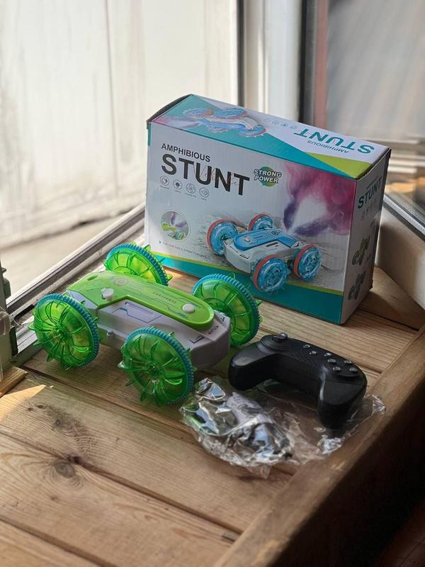 Машинка перевертыш Stunt Car 1841-2 - это уникальная радиоуправляемая амфибия, способная передвигаться как по суше, так и воде. Современный футуристический дизайн, яркая подсветка колес и захватывающие трюки делают эту модель идеальной для активного отдыха и приключений. Благодаря своим уникальным возможностям, машинка может выполнять впечатляющие 360-градусные вращения, перевороты и другие трюки даже в перевернутом положении. Парогенератор добавляет еще больше реалистичности и эффектов в процессе игры, создавая визуальное впечатление дыма. Эта машинка станет отличным подарком для детей, увлеченных радиоуправляемыми моделями и любят активные игры на свежем воздухе. Основные особенности: Машинка-амфибия для покорения любых поверхностей: Способна передвигаться по траве, песку, асфальту и даже воде, что делает ее универсальной для использования в различных условиях. Уникальные трюки и вращения: Машинка может выполнять 360-градусные вращения и перевороты на любой поверхности, включая воду. Даже в перевернутом состоянии модель легко управляется, что добавляет ей дополнительную маневренность и функциональность.