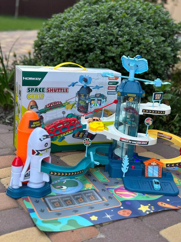 Трек оснащений електричним підіймачем для машинок. Складається зі спеціально розробленої траси, яка включає петлі спіралі тунелі мости та повороти. Комплектація: 4 міні машинки Ігрове поле Наліпки Працює від батарейок АА 2шт (не додаються) Розмір: 60х30х35см