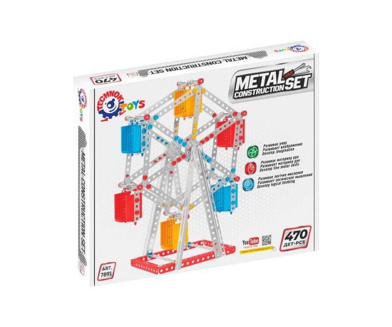 Традиція металевих конструкторів бере свій початок далекому 18 ст. На цих конструкторах виросло багато поколінь відомих винахідників, механіків та інженерів. Завдяки іграшці хлопчаки (та й дівчатка) здобувають перші навички з’єднання деталей гвинтами, гайками, роботи викруткою та ключами. Вони власними руками створюють справжні моделі, що "працюють": різноманітні автомобілі, гелікоптер, кран, трактор, потяг, позашляховик, танк, мотоцикл та багато іншої техніки. Робота з конструктором:викликає у дітей інтерес до роботи машин та механізмів;дає базові поняття про взаємодію окремих частин;знайомить з технічними назвами деталей, простими кресленнями та схемами;розвиває навикилогічного мислення, просторову уяву, уважність та фантазію. Металеві конструктори використовуються на уроках в початковій школі, як набори для конструювання з різними способами з'єднання (НУШ). Новітня методика STEM (Science, Technology, Engineering, Mathematics), що набирає обертів, активно застосовує такі конструктори в освітньому процесі. Наприклад можна зібрати модель молекули, квітки, вітряка чи динозавра. Дитина не просто знайомиться з новими напрямами розвитку точних наук та інженерії, а вчиться реалізовувати вивчене на практиці.Металеві конструктори ТехноК вирізняють високою якістю та різноманіттям деталей, цікавим поєднанням металевих та пластикових запчастин. У кожному наборі є викрутка та ключі для збирання моделей. На допомогу юним механікам – кольорова, детальна покрокова інструкція, яку також можна завантажити з нашого корпоративного сайту. Особливо увагу варто приділити детальній відео інструкції на YouTube каналі. Крім того малий винахідник може придумати власні варіанти збирання та нові цікаві моделі. Творча робота є основою розвитку креативного мислення дитини. Ігри з конструктором ТехноК принесуть багато користі та будуть цікавими не тільки малюкам, а й дорослим. Металевий конструктор арт. 7891 "Оглядове колесо" (470 деталей) серії "Визначні місця – модель одного з найбільших оглядових коліс London Eye м.Лондон, Велика Британія. Висота зібраної моделі – 30 см. Особливістю набору є пластикові кліпси для фіксації металевих пластин. Вони забезпечують швидке та легке збирання конструктора. Крім функціоналу, яскравий колір додає краси зібраним моделям. У наборах покрокова кольорова інструкція. Пакування - яскрава коробка.Для дітей від 5-ти років. Інструкція