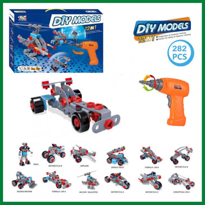 Дитячий гвинтовий конструктор telehui div models tlh-16 12в1 282 деталі, конструктор з шур...