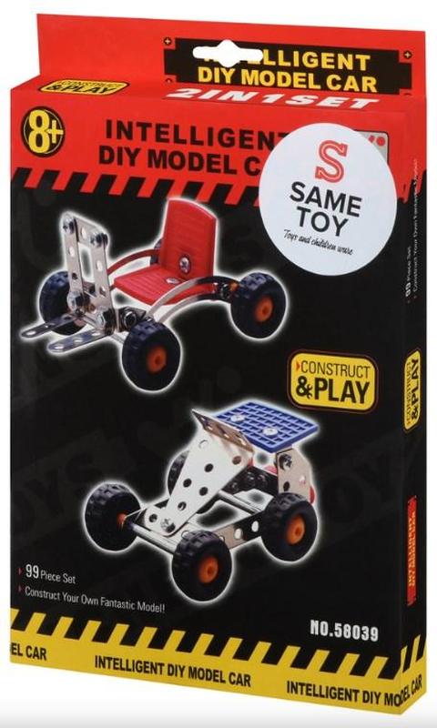 Розвиваюча гра-конструктор «Набір 2 в 1» від Same Toy дозволить дитині побудувати спортивний карт і самоскид. Або Сконструюють свою власну фантастичну модель! З таким набором діти охоче грати в сюжетно-рольові ігри про транспорт. Набір складається з металевих і пластикових деталей, що сполучаються за допомогою гвинтів і гайок. У комплект входить інструкція по схемі, а серед деталей є викрутка і гайковий ключ для зручності і надійності кріплення. Такий конструктор розвивати у дітей дрібну моторику, логіку і уяву. Рекомендовано дітям від 8-ми років.