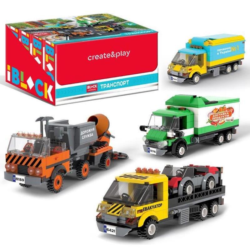 Конструктор IBLOCK Транспорт, 4 види 215-227дет, інструкція українською мовою, наклейки, в коробці 22*16*6см Увага. Виробник залишає за собою право змінювати комплектацію, колірну гаму та характеристики товару без попереднього повідомлення. .