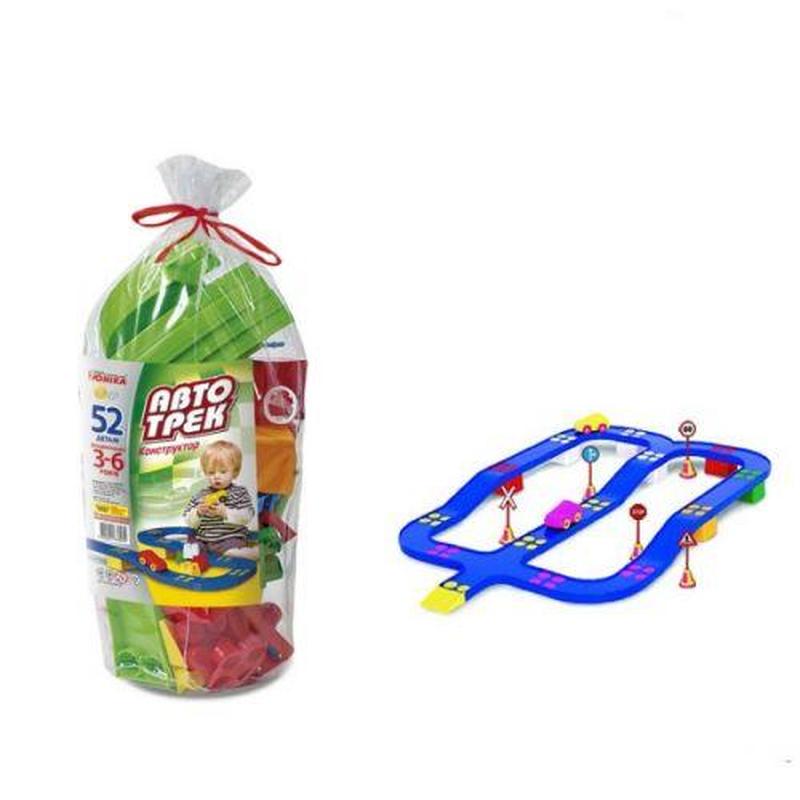 Конструктор "Автотрек", 52 деталі. Набір складається з 52 деталей, використовуючи які, дитина зможе створити велику різнорівневу дорогу. 2 машинки та дорожні знаки в комплекті.