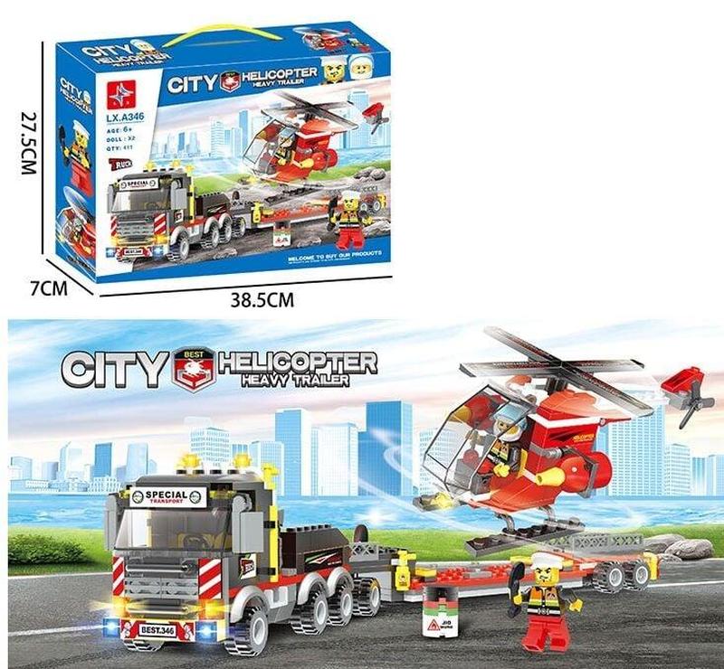 Конструктор, "трейлер з гелікоптером", 412 деталей, у коробці