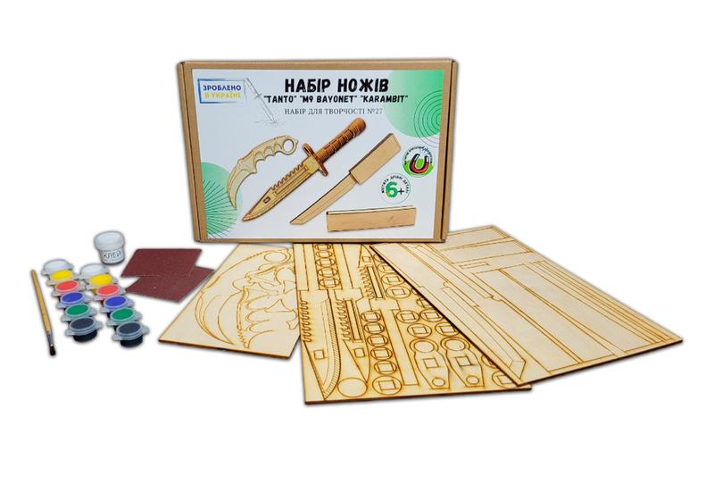 Набір для творчості із 3-х ножів standoff 2 tanto, m9, karambit із фанери набір №27