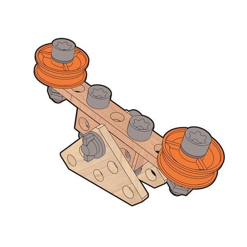 Используйте детали и инструменты конструктора Junior Inventor от Hape для создания собственных изобретений. В наборе есть все, что необходимо для юных изобретателей. С помощью понятной инструкции ребенок создаст свои первые изобретения: качели, беговел, ветряную мельницу, самолет, лисичку и другие фигуры. Что есть в наборе: блок с 1 отверстием, 2 блока с 3 отверстиями, 4 планки с 3 отверстиями, 4 планки с 5 отверстиями, 2 планки с 7 отверстиями, 2 треугольные доски, 7 длинных винтов, 6 коротких винтов, 7 гаек, крышка, вращатель с 3 отверстиями, основание с 3 отверстиями, 2 маленьких колеса, отвертка, гаечный ключ. Игровые наборы серии Junior Inventor (юный изобретатель) используются для развития логического мышления и понимания принципов науки, технологий, инженерии, искусства и математики (STEAM). У всех деталей закруглены края. Совместим с другими наборами Junior Inventor. Конструктор Hape Junior Inventor стартовый набор (E3031) соответствует международным стандартам качества EN 71 и ASTM F963. Батарейки не требуются.