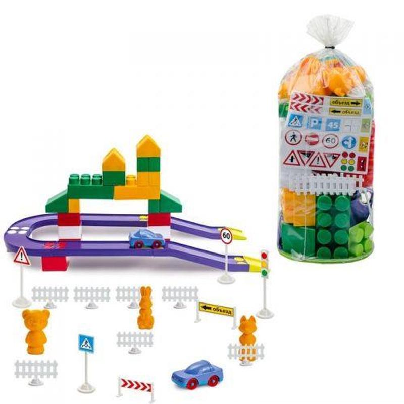 Яскравий пластиковий конструктор, що складається із 70 деталей досить великого розміру. Конструктор розвиває дрібну моторику рук, фантазію й уяву. У наборі є всі необхідні деталі для гри.