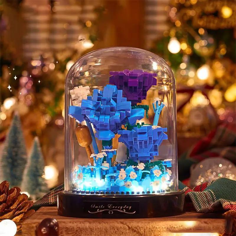 Конструктор нічник блочний дитячий з підсвіткою квітка в колбі синя петунія квіти